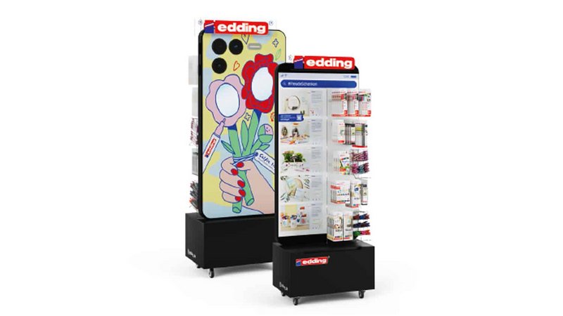 Das Display «CreaPhone» ist im Stil eines Smartphones gestaltet und zeigt Inspirationen im Look eines Social-Media-Feeds. Neben charmanten Texten und DIY-Ideen finden Kundinnen und Kunden direkt den passenden Marker zum Mitnehmen. Laut Edding soll so die Suche nach dem richtigen Produkt verkürzt und die Kaufentscheidung erleichtert werden, wie das Branchenportal wll.news berichtet.