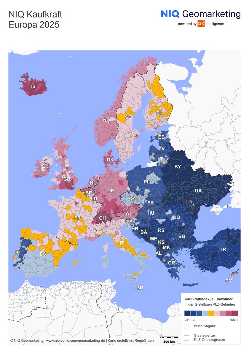 «Die Kaufkraftunterschiede innerhalb Europas sind nach wie vor erheblich», erklärt Markus Frank, NIQ-Experte für Geomarketing. «So verfügen die Menschen in Liechtenstein – dem Spitzenreiter im Ranking – über mehr als das 24-Fache an Kaufkraft im Vergleich zur Ukraine, die das Schlusslicht bildet. Dennoch zeigt sich ein langfristiger Trend: Länder mit geringerer Kaufkraft verzeichnen überdurchschnittliche Zuwächse. Dadurch verringert sich die Kluft zwischen den Nationen allmählich.»
