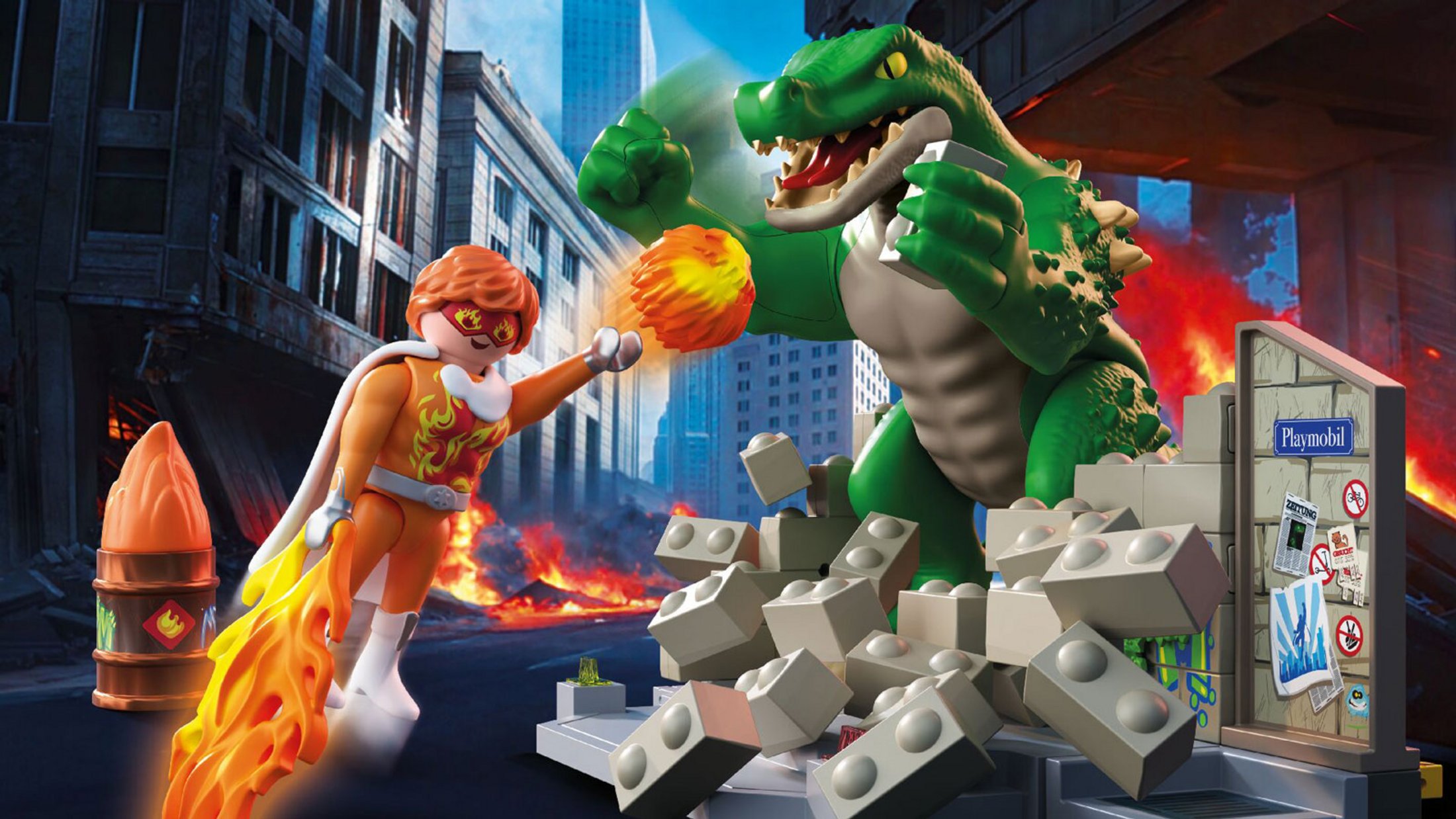 In der neuen Spielwelt laden unterschiedliche Helden mit individuellen Fähigkeiten, detailreiches Zubehör und vielseitige Fahrzeuge zu kreativen Abenteuern ein, wie Playmobil mitteilt. Mit dabei: der Feuer-Held «Firestormer» mit Flammenkraft und Spezialausrüstung. Doch der Megaraptor macht es den Helden nicht leicht: Die Riesenechse ist sehr gelenkig und kämpft mit verschiedenen Greif- und Schlagfunktionen seiner Arme.