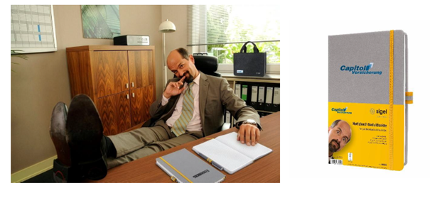 SIGEL entwickelt Lösungen, die den Arbeitsalltag moderner und produktiver machen. Stromberg verkörpert den Büroalltag auf unverwechselbare, humorvolle Art. Beide Partner sind Profis im Büro und haben bereits 2014 zum ersten Stromberg-Film kooperiert. Die neuen SIGEL Merchandise-Artikel, die in Zusammenarbeit mit Banijay Media Germany entstanden sind, fügen sich in die Arbeitswelt der Capitol Versicherung ein. Mit den Desk Sharing Bags „Machttasche“ und „StromBag“, den Notizbüchern „Geduldsakte“ und „StromBlock“ sowie dem Postkartenset „Chefpost“ sind authentische Büroprodukte entstanden, die den typischen Stromberg-Ton treffen. Als hochwertige Markenprodukte eigenen sich diese Fan-Artikel für den Einsatz im echten Büroalltag.